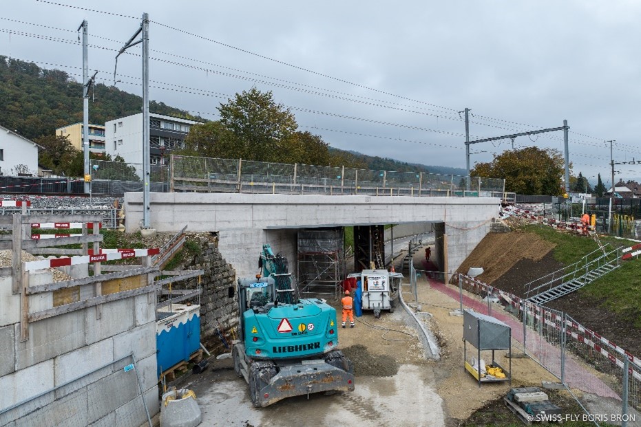 Les travaux suivants ont été réalisés : – Parois berlinoise ancrées et de micropieux de nuits en maintenant l’exploitation ferroviaire. – Mise en place de 100m de mini-palplanche entre les deux voies afin de pouvoir rehausser la plateforme définitive. – 4 opérations coups de poings pour la mise en place de deux ponts provisoires par voie avec un appui provisoire central y compris dépose à la fin de la réalisation de l’ouvrage béton. – Réalisation de l’entier des travaux de construction du nouvel ouvrage en maintenant l’exploitation ferroviaire. – Création de nouveaux socles LC, drainages et rehaussement des plateformes ferroviaires sur environ 200m – Nouvelles parois anti-bruit sur le PI |